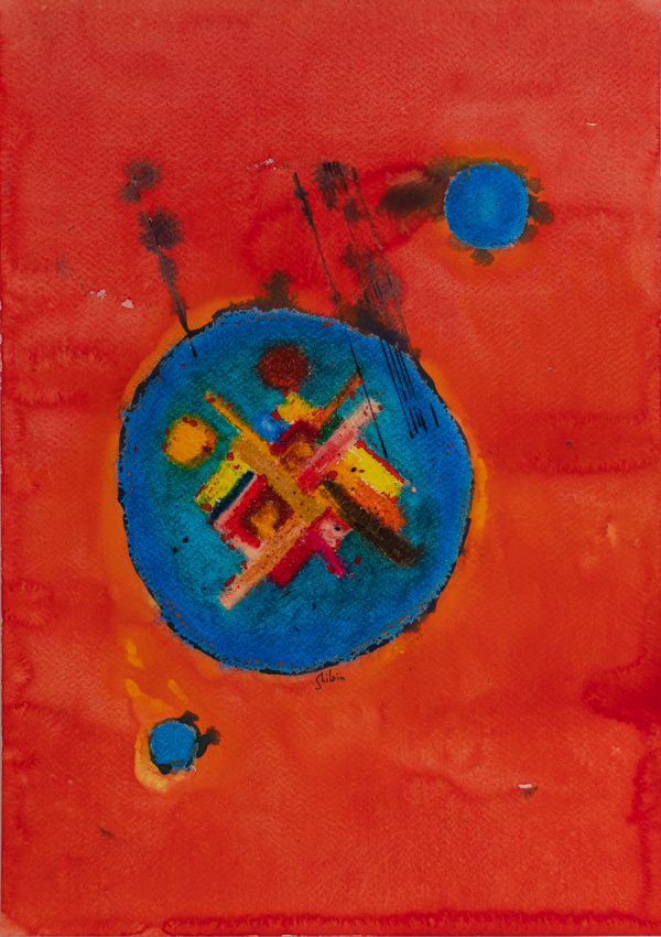 Watercolor, gouache, oil pastel and oil color on paper